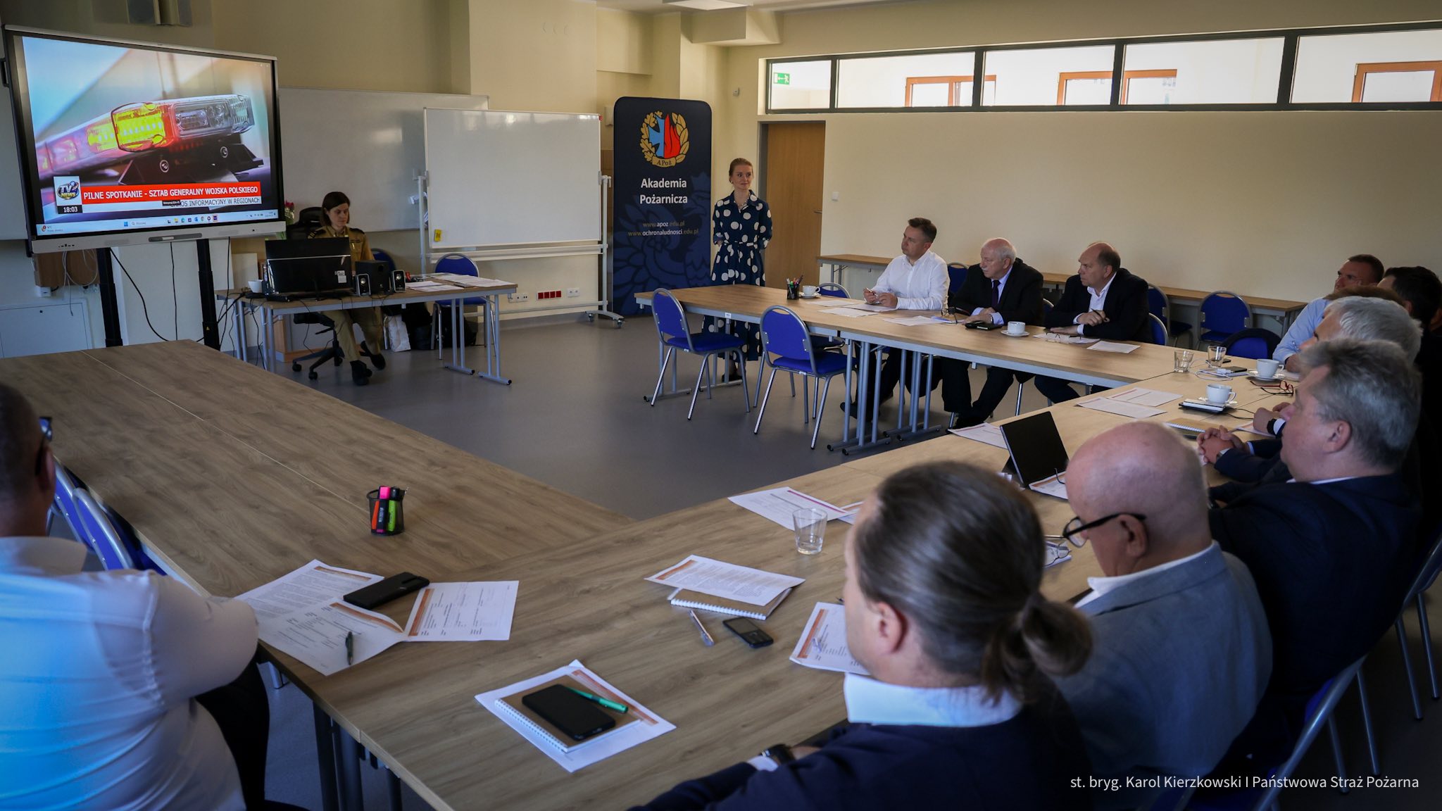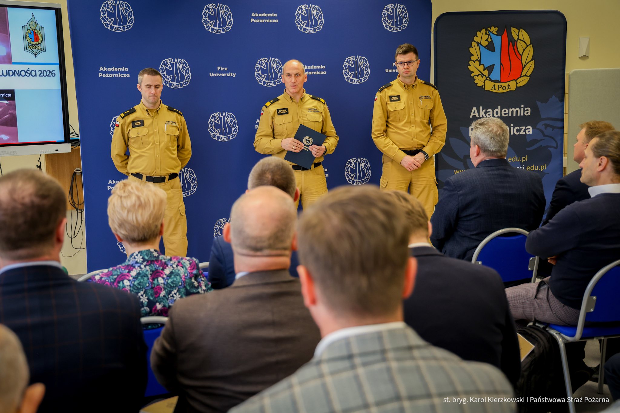 22 kwietnia 2026 r. w Akademii Pożarniczej odbyła się kolejna edycja szkolenia aktualizującego Wyższych Kursów Ochrony Ludności (WKOL-P) dla osób pełniących funkcję starostów oraz prezydentów miast na prawach powiatu.
