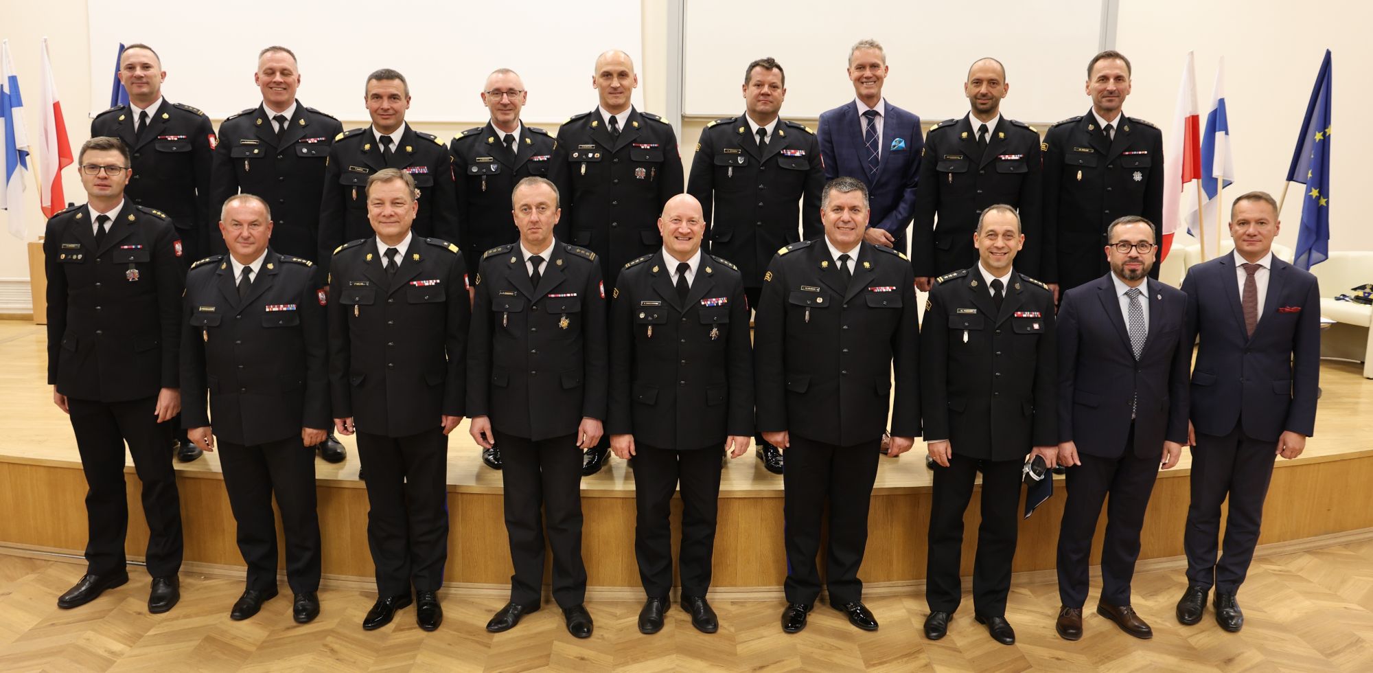 Po zakończeniu szkoleń zasadniczych realizowanych w formie Wyższego Kursu Ochrony Ludności dla osób objętych obowiązkiem szkoleniowym, o których mowa w art. 50 ust. 1 ustawy z dnia 5 grudnia 2024 r. o ochronie ludności i obronie cywilnej, Akademia Pożarnicza rozpoczęła cykl szkoleń z zakresu ochrony ludności i obrony cywilnej dla kadry kierowniczej Państwowej Straży Pożarnej.