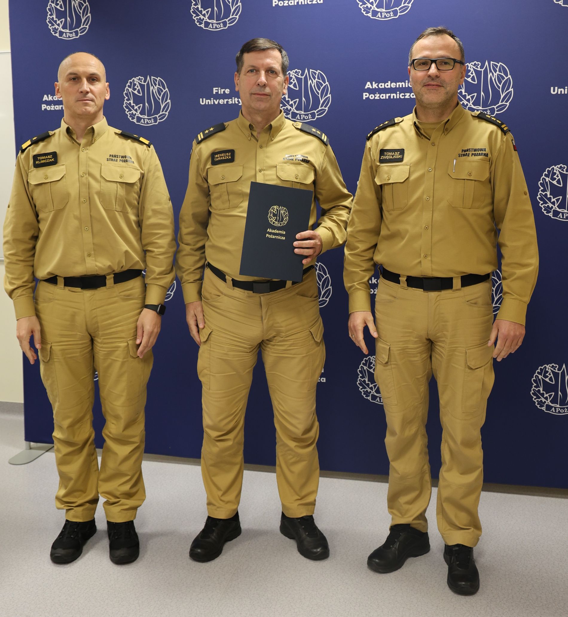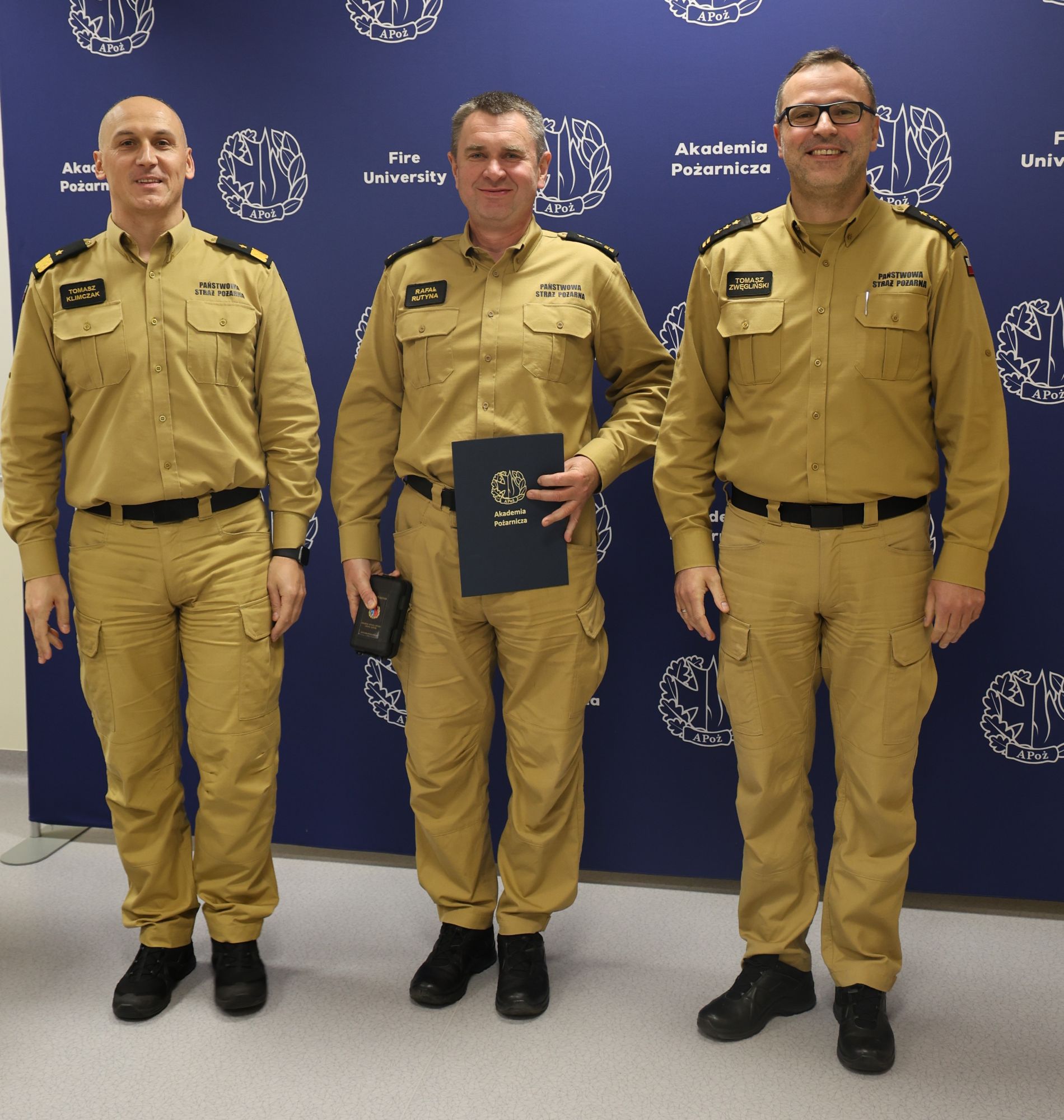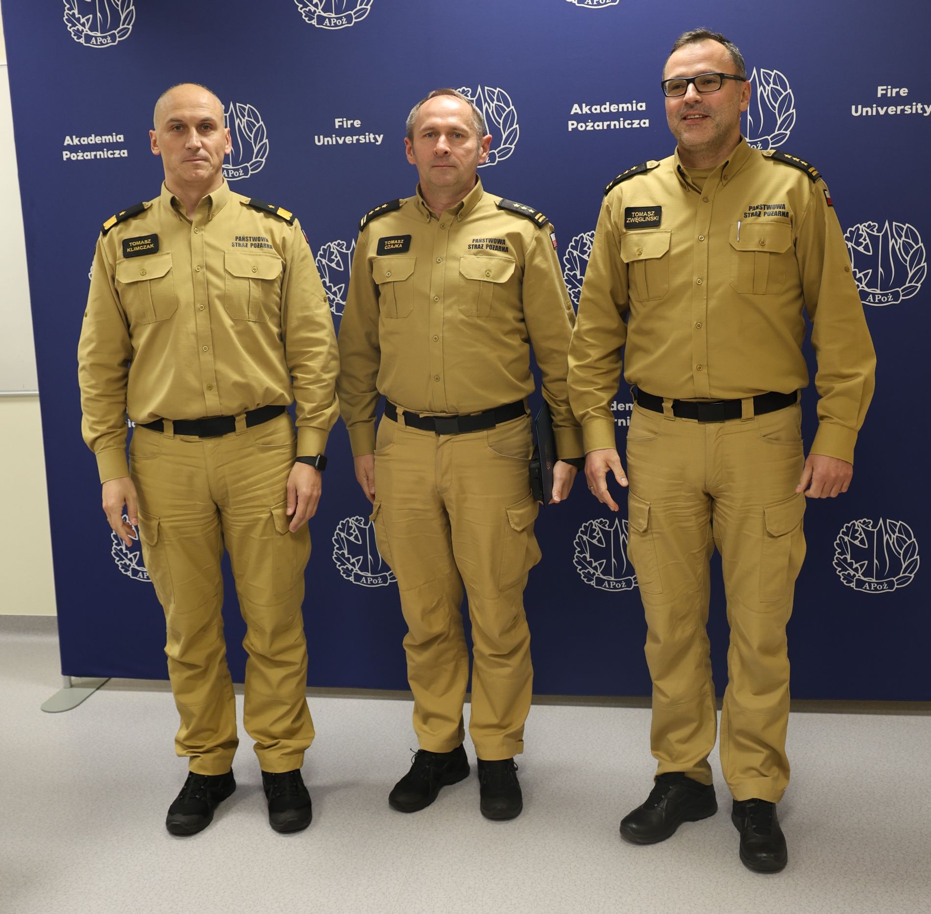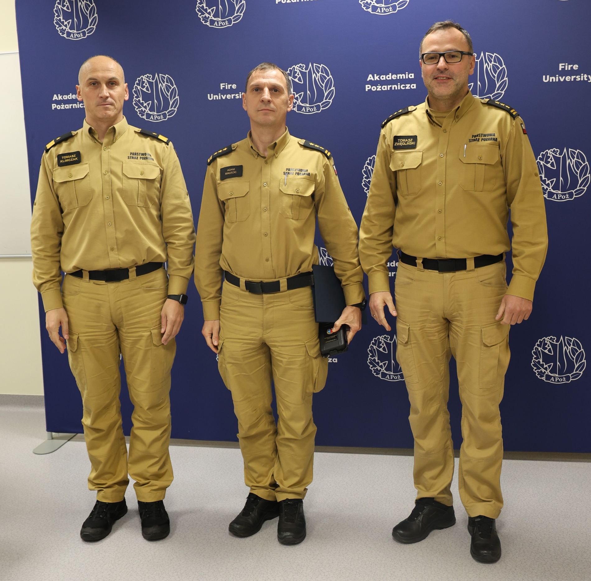 W dniu 6 listopada 2025 r. w Akademii Pożarniczej zakończyła się trzecia edycja szkolenia z zakresu ochrony ludności i obrony cywilnej, w którym uczestniczyli komendanci oraz zastępcy komendantów powiatowych (miejskich) Państwowej Straży Pożarnej z województw kujawsko-pomorskiego i podkarpackiego.