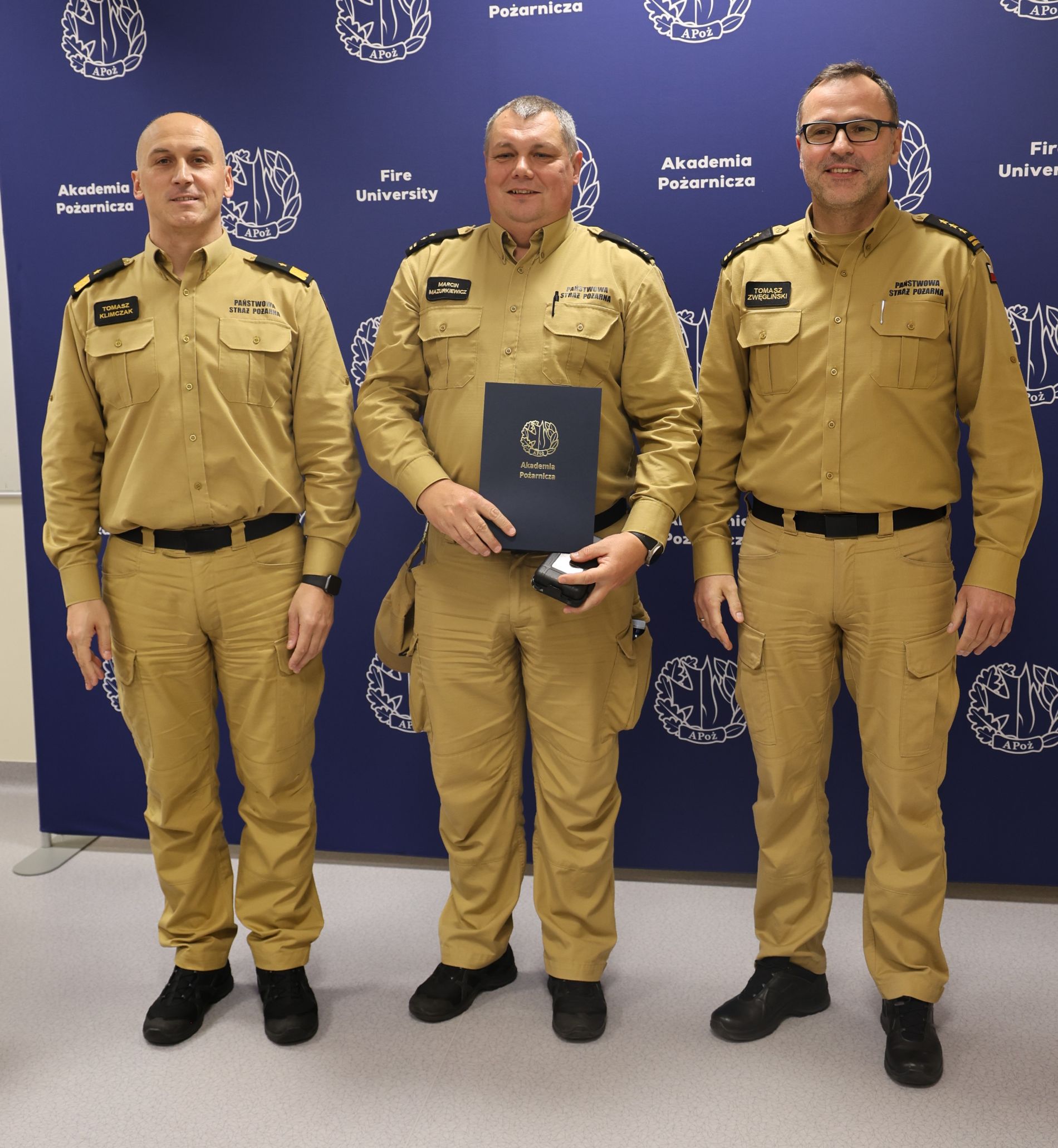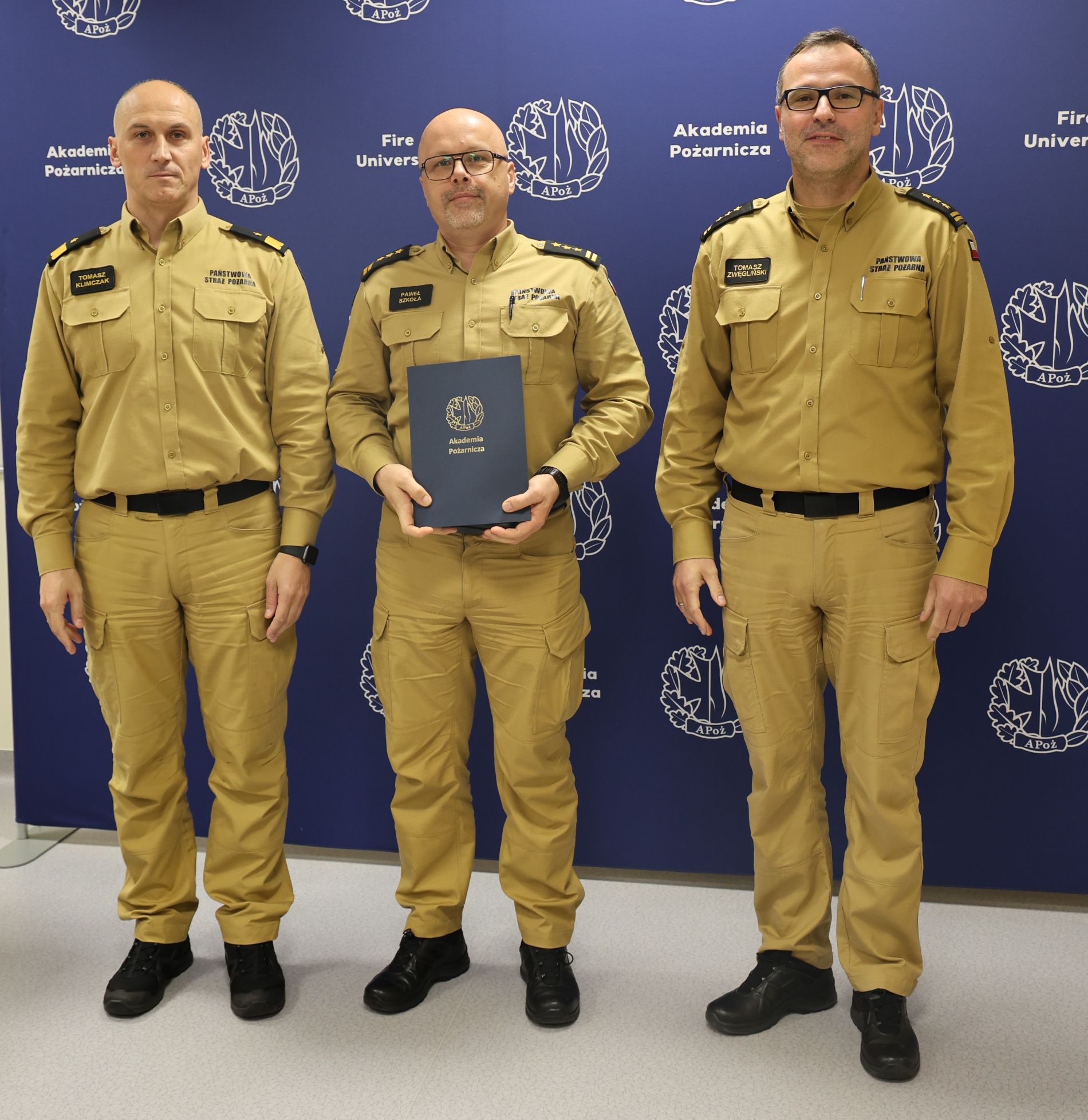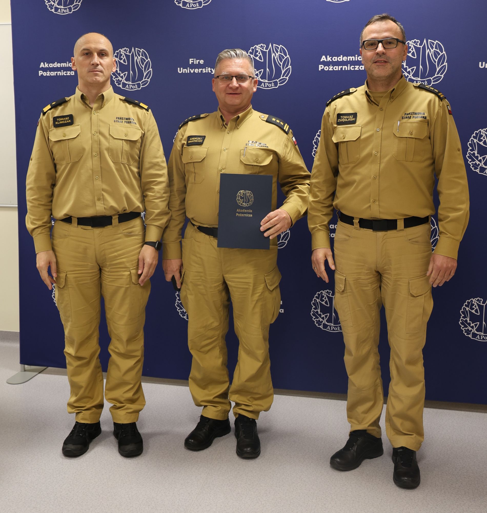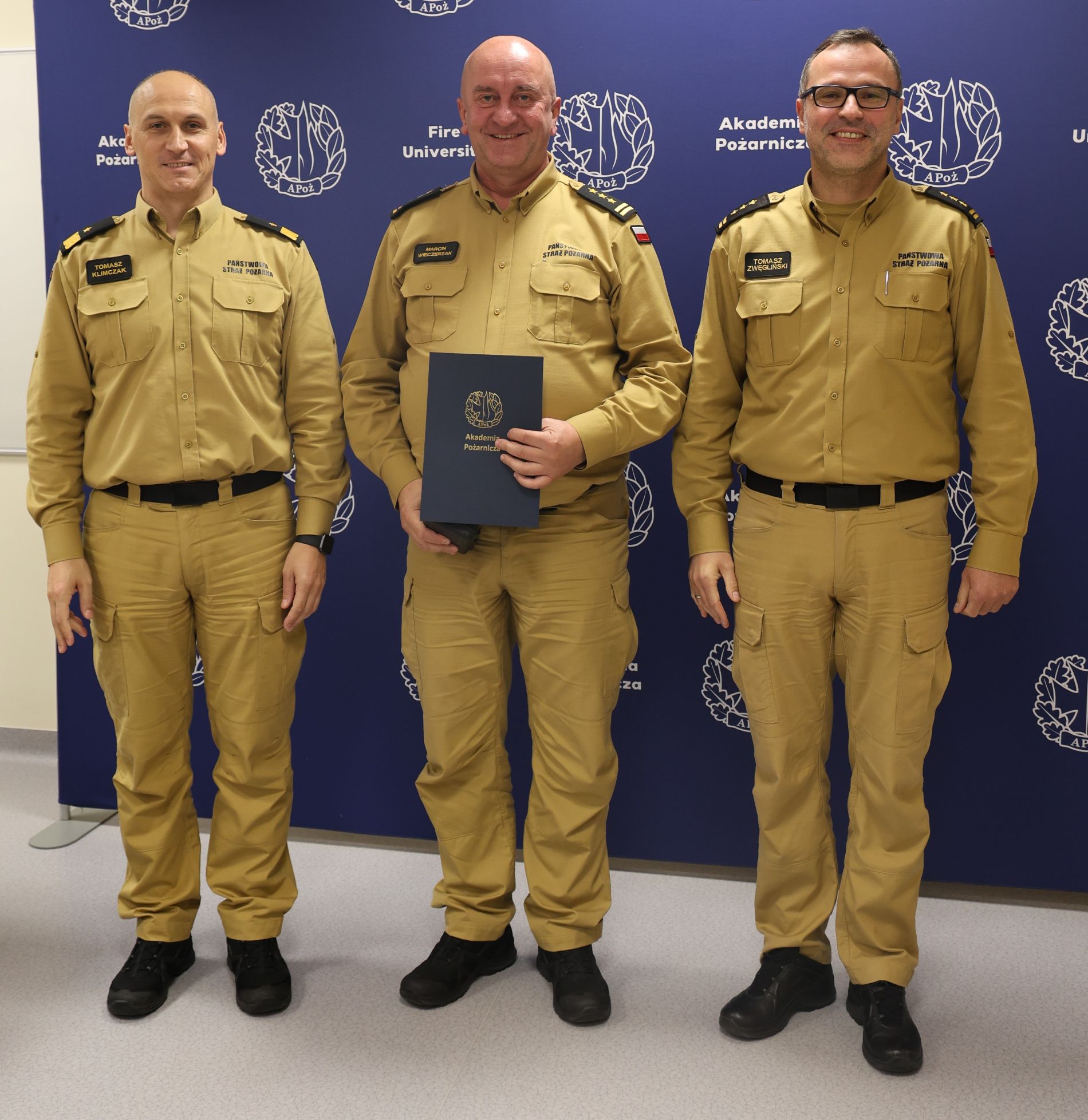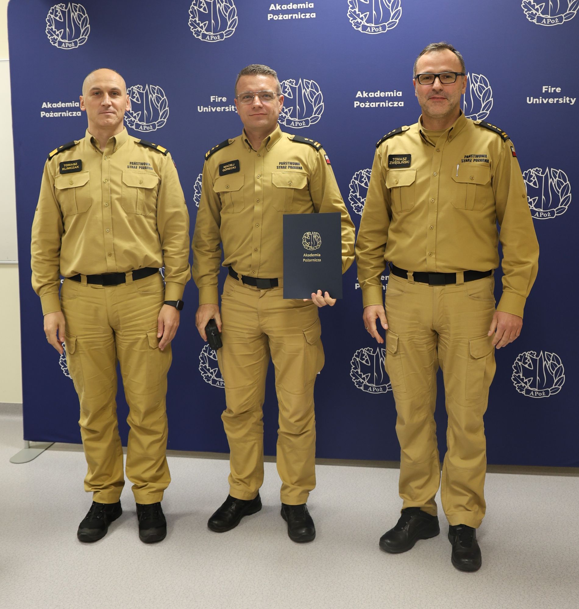 W dniu 6 listopada 2025 r. w Akademii Pożarniczej zakończyła się trzecia edycja szkolenia z zakresu ochrony ludności i obrony cywilnej, w którym uczestniczyli komendanci oraz zastępcy komendantów powiatowych (miejskich) Państwowej Straży Pożarnej z województw kujawsko-pomorskiego i podkarpackiego.