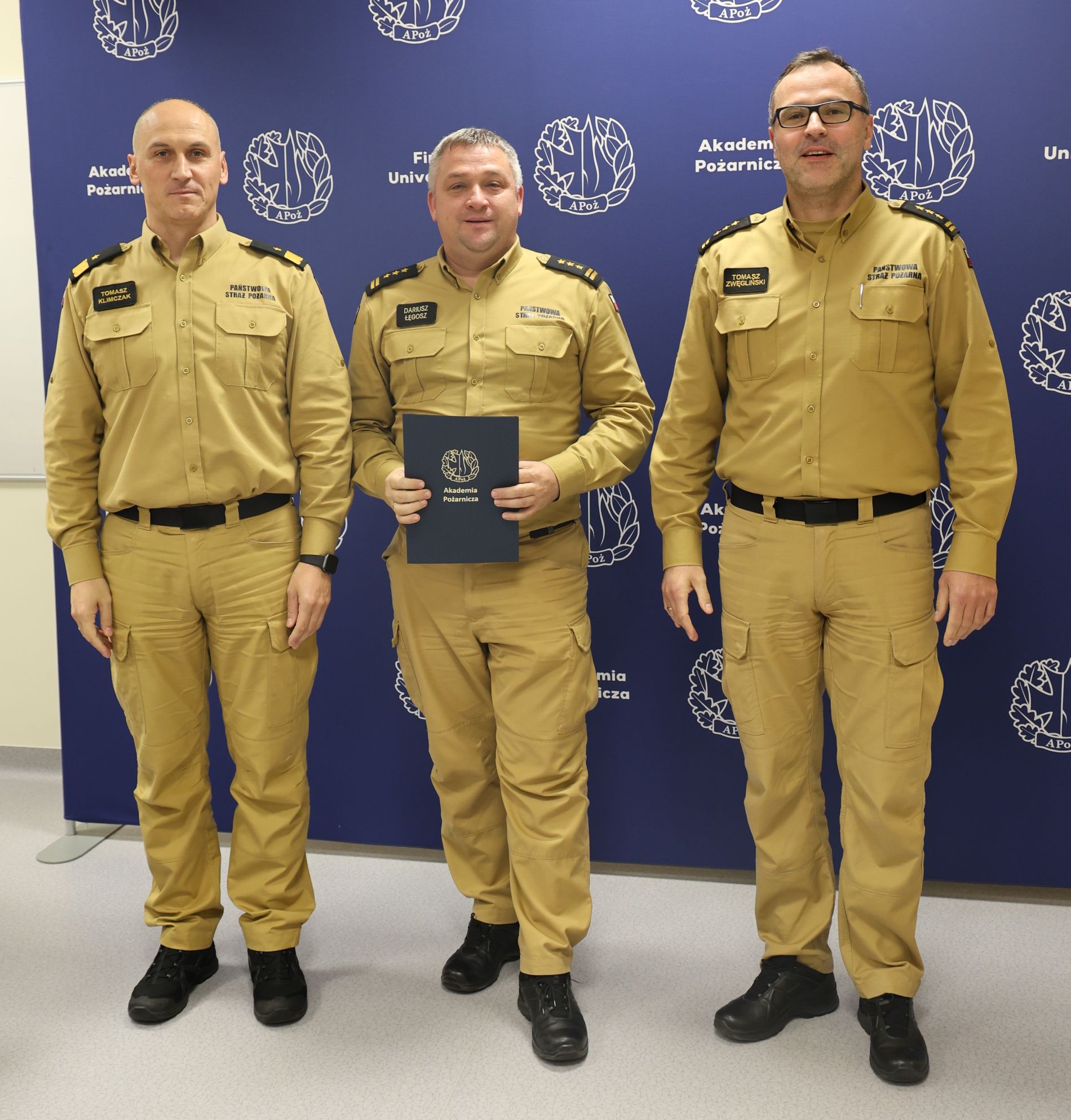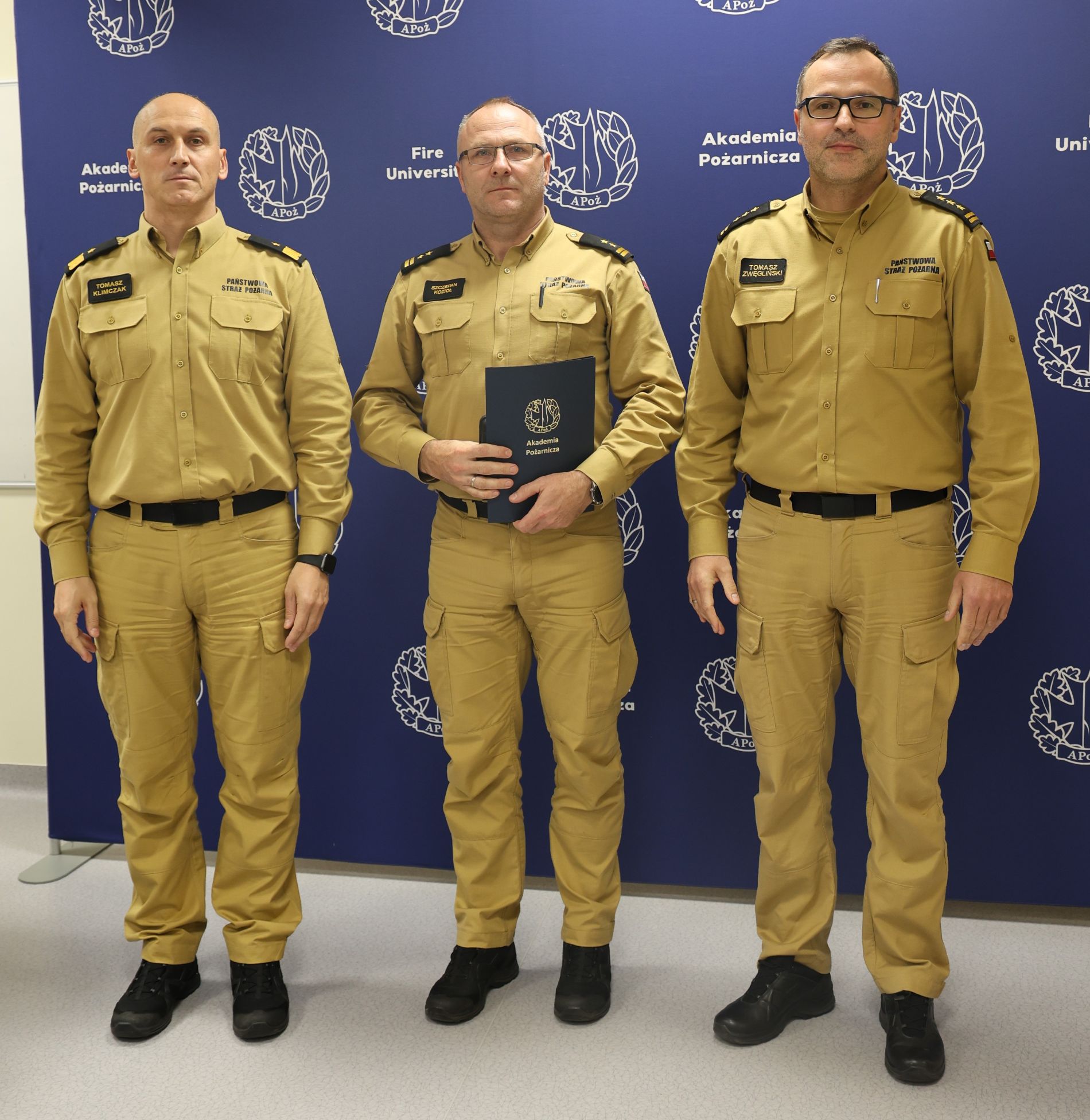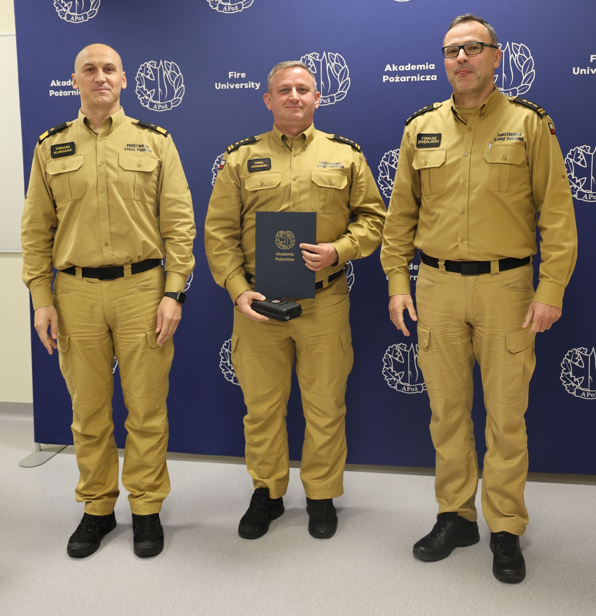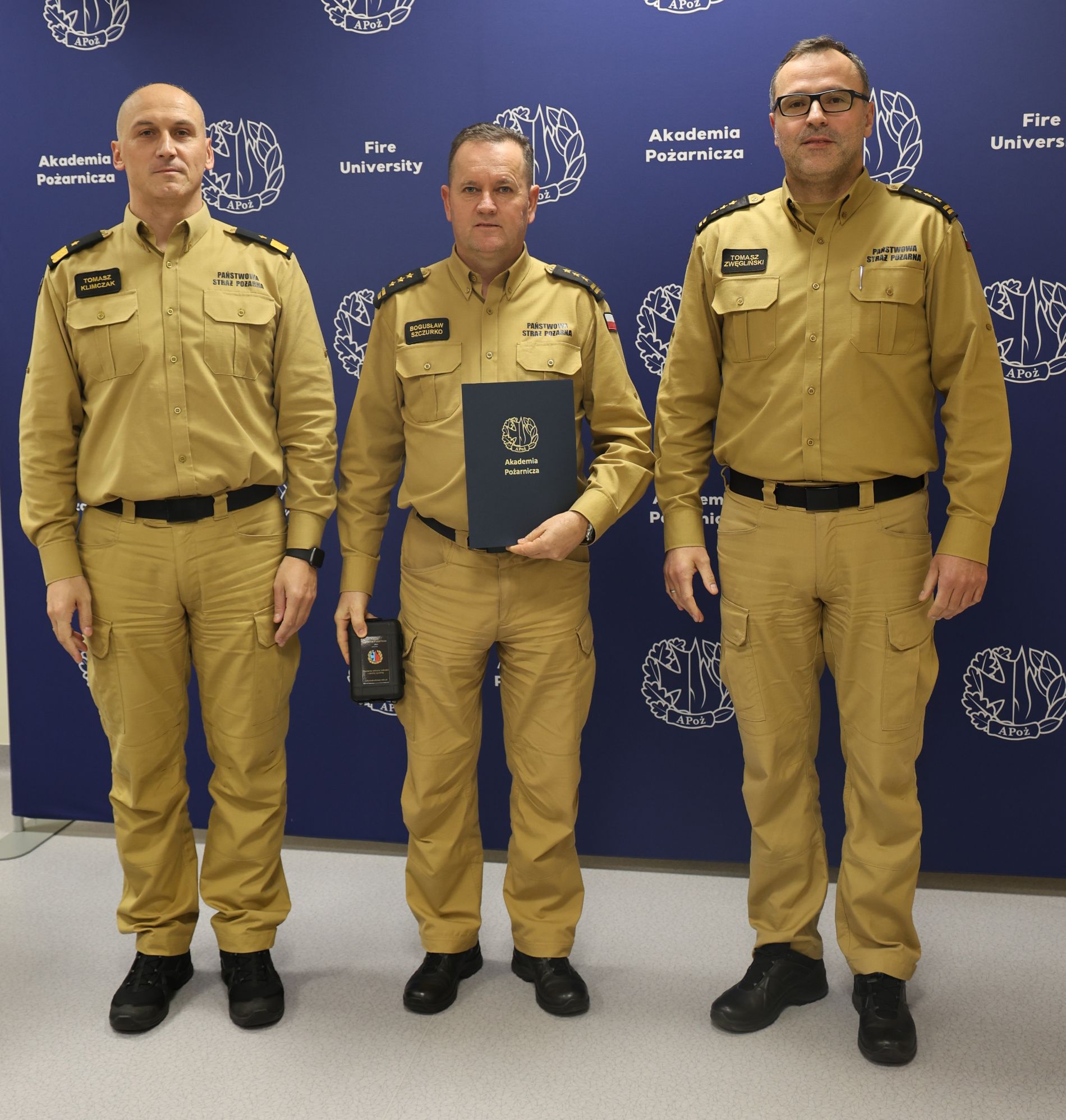 W dniu 6 listopada 2025 r. w Akademii Pożarniczej zakończyła się trzecia edycja szkolenia z zakresu ochrony ludności i obrony cywilnej, w którym uczestniczyli komendanci oraz zastępcy komendantów powiatowych (miejskich) Państwowej Straży Pożarnej z województw kujawsko-pomorskiego i podkarpackiego.