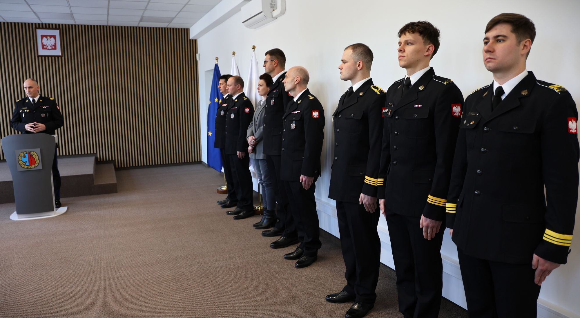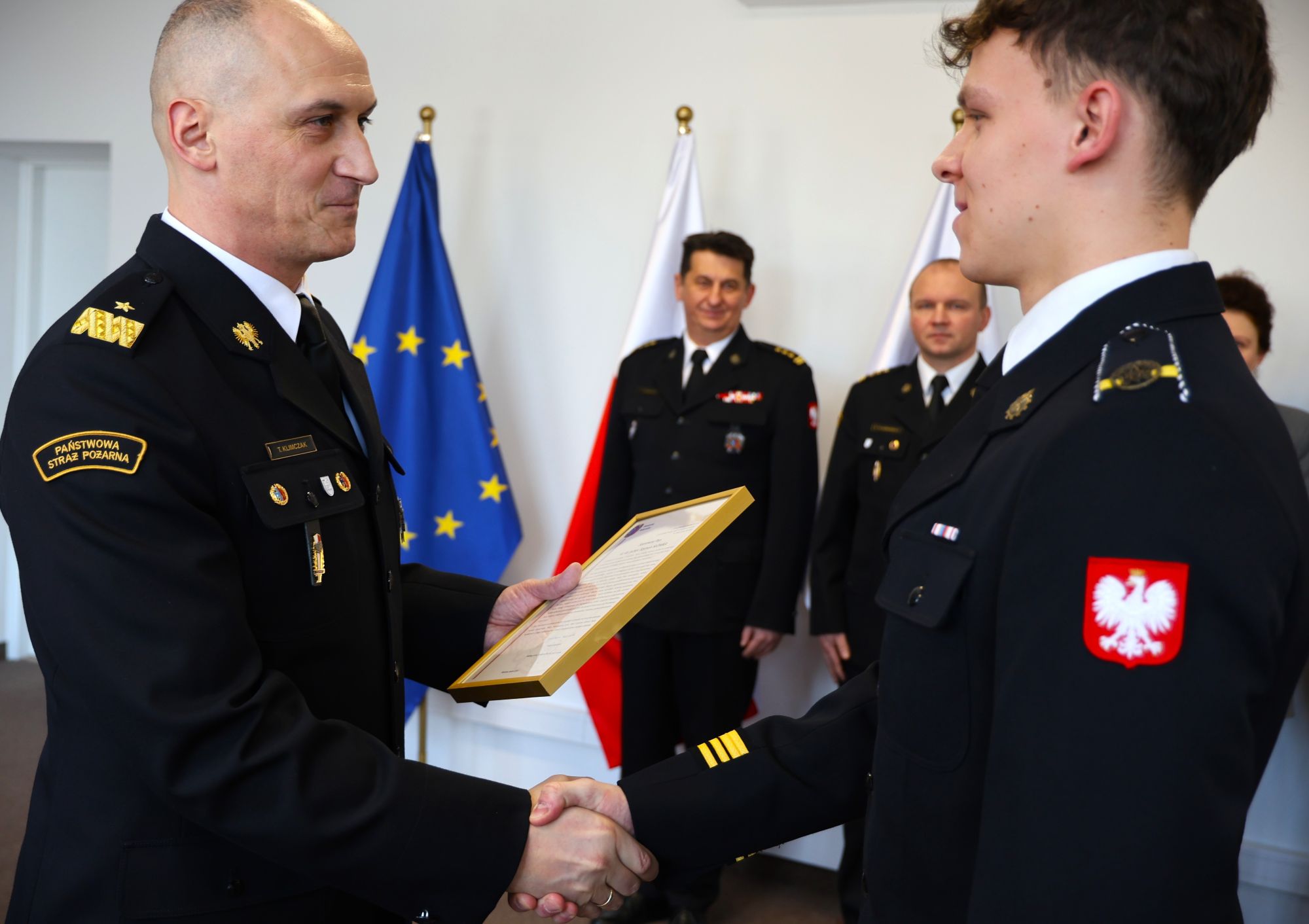 Rektor-Komendant Akademii Pożarniczej nadbryg. dr inż. Tomasz KLIMCZAK, prof. uczelni, spotkał się ze studentami-podchorążymi, aby osobiście wyróżnić i podziękować za godną najwyższego uznania postawę, profesjonalizm i odwagę okazaną w sytuacji realnego zagrożenia życia.