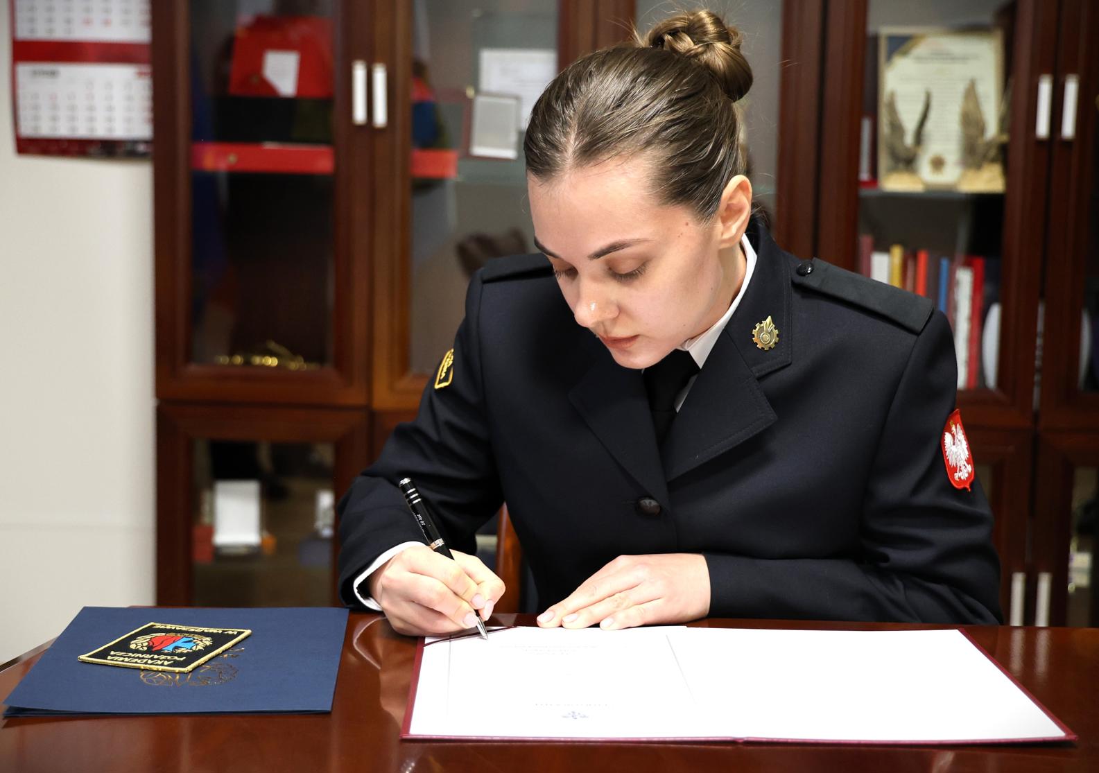 Ślubowanie nowej funkcjonariuszki PSP w Akademii Pożarniczej