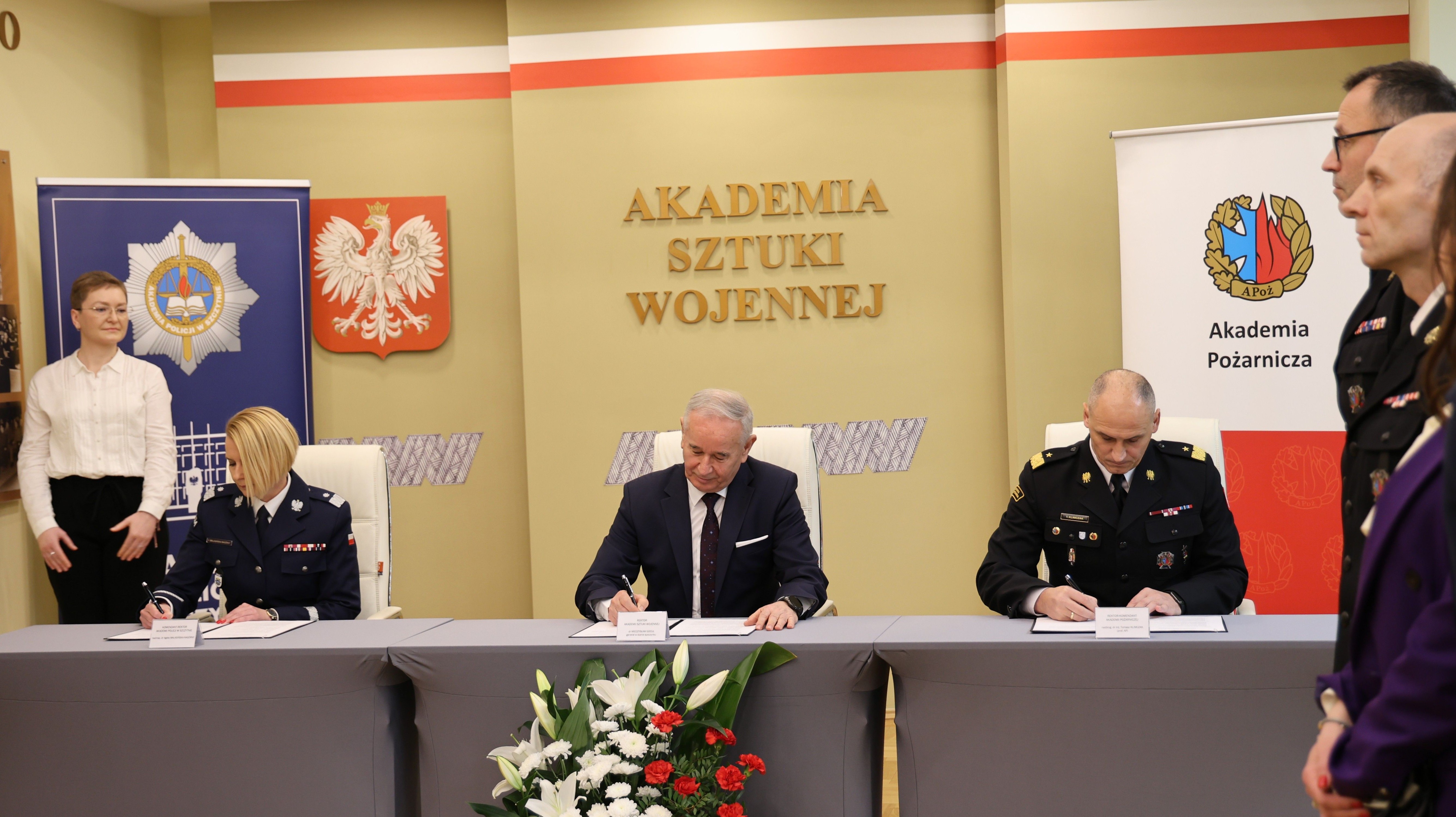 W Akademii Sztuki Wojennej podpisano dziś porozumienie pomiędzy trzema uczelniami mundurowymi: Akademią Policji w Szczytnie, Akademią Pożarniczą oraz Akademią Sztuki Wojennej. Wspólnie uruchomią one nowy kierunek studiów pierwszego stopnia – „Ochrona Ludności i Obrona Cywilna”.