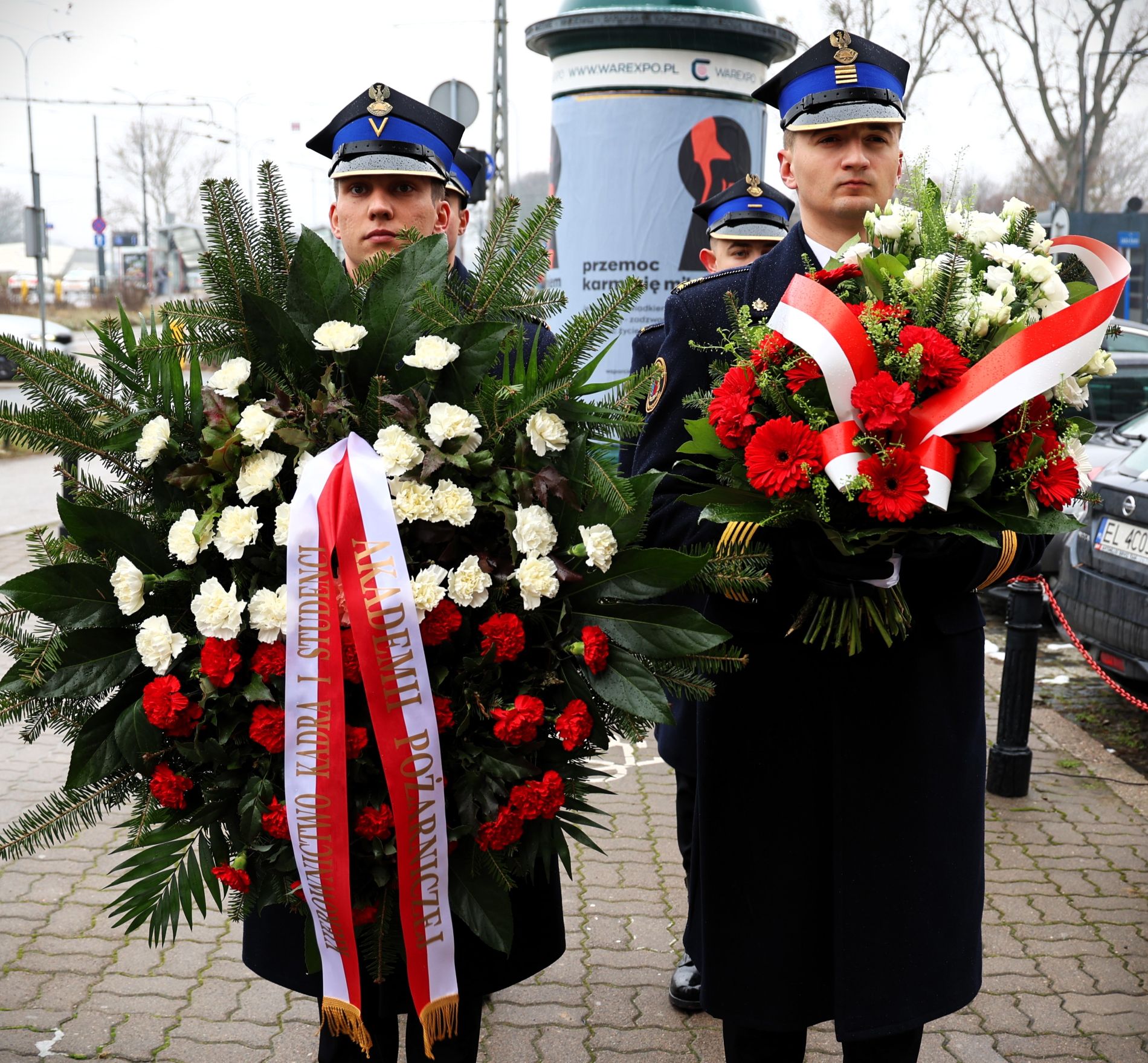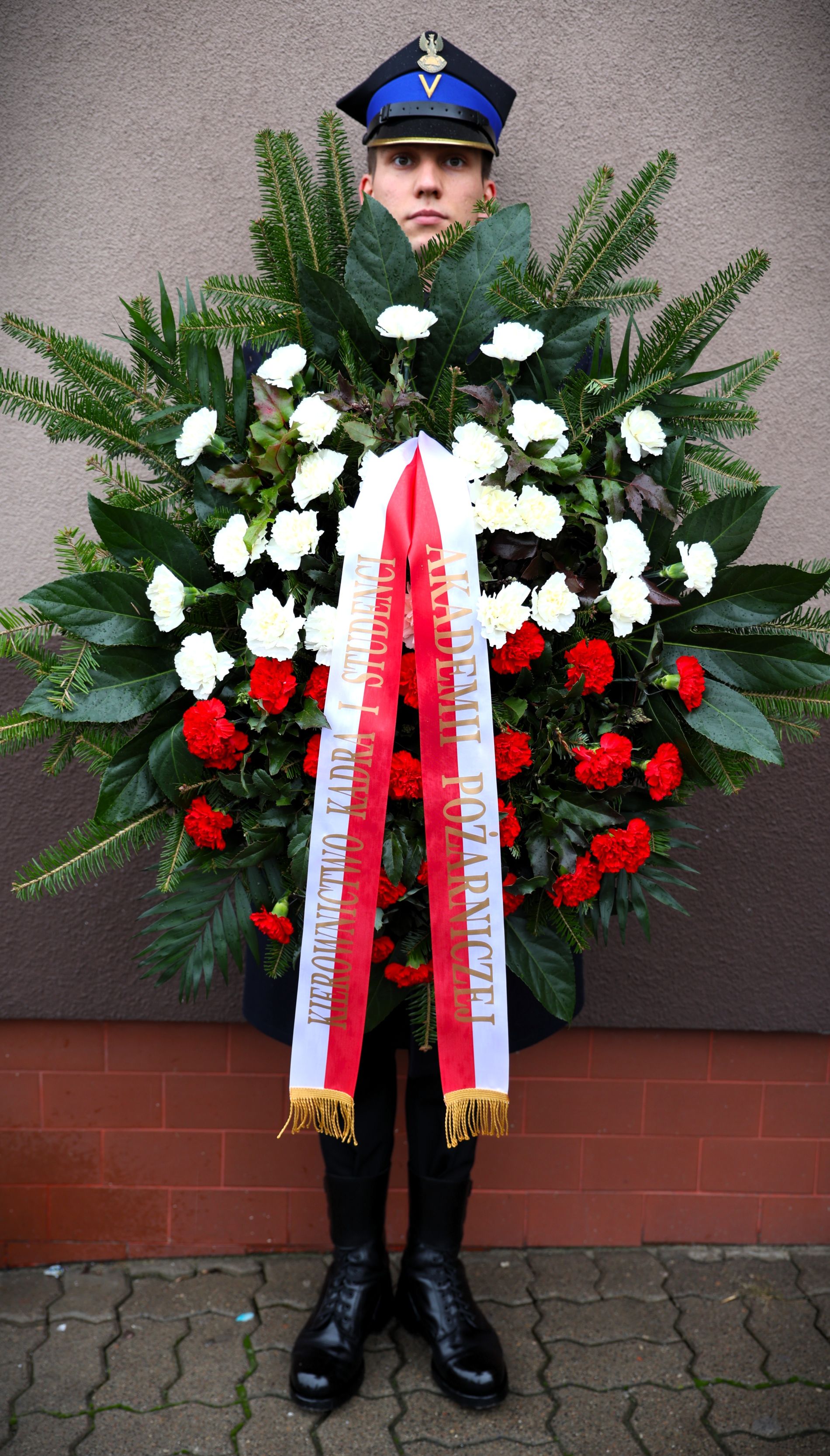 W imieniu społeczności pożarniczej oraz władz uczelni wieniec złożyli Komendant Główny Państwowej Straży Pożarnej nadbryg. Wojciech Kruczek oraz Rektor-Komendant Akademii Pożarniczej nadbryg. dr inż. Tomasz Klimczak, prof. uczelni.
