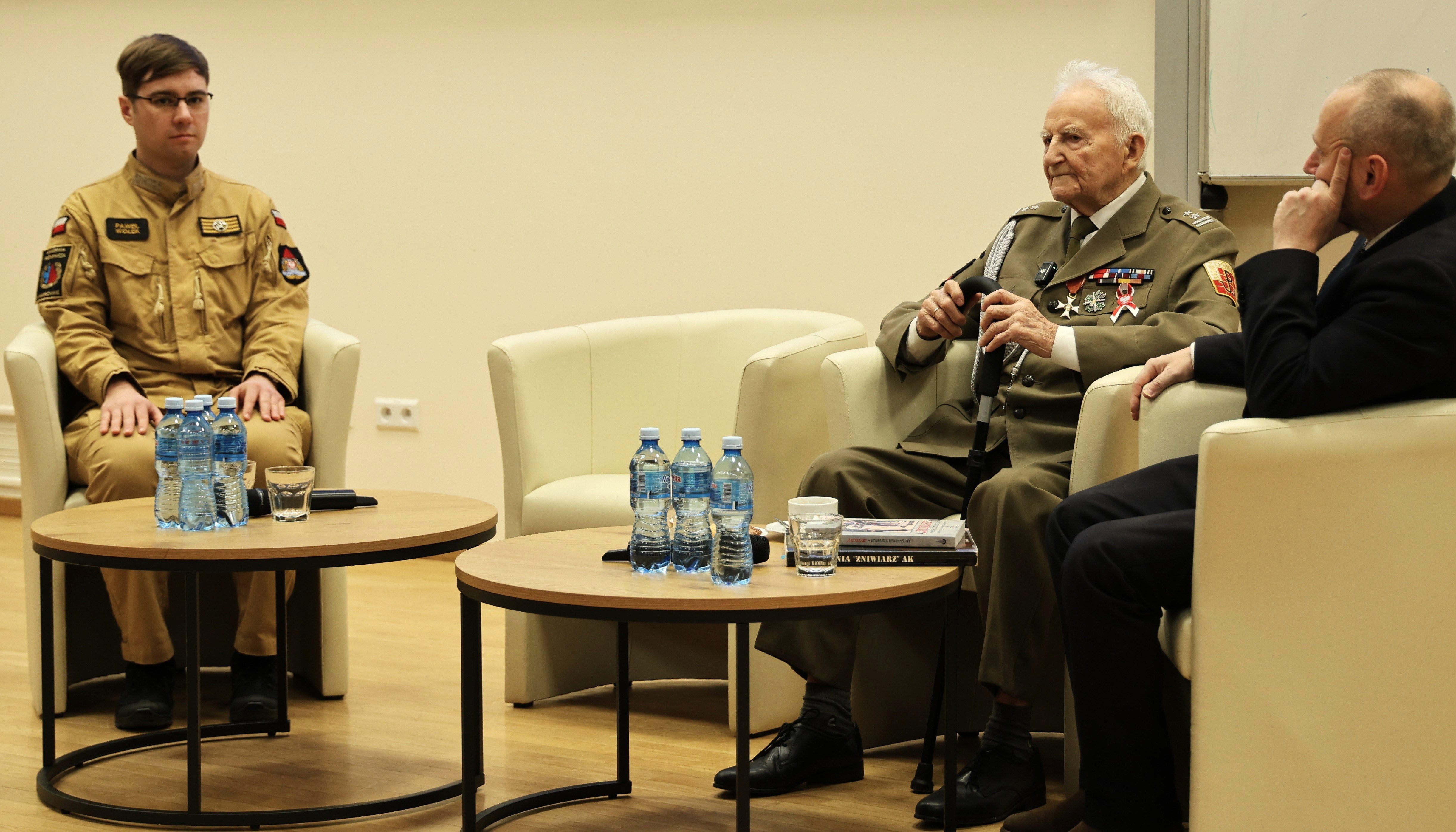 Dziś naszą uczelnię odwiedził gość szczególny – Pan ppłk Jakub Tomasz Nowakowski ps. „Tomasz”, Powstaniec Warszawski, żołnierz legendarnego batalionu „Zośka”.