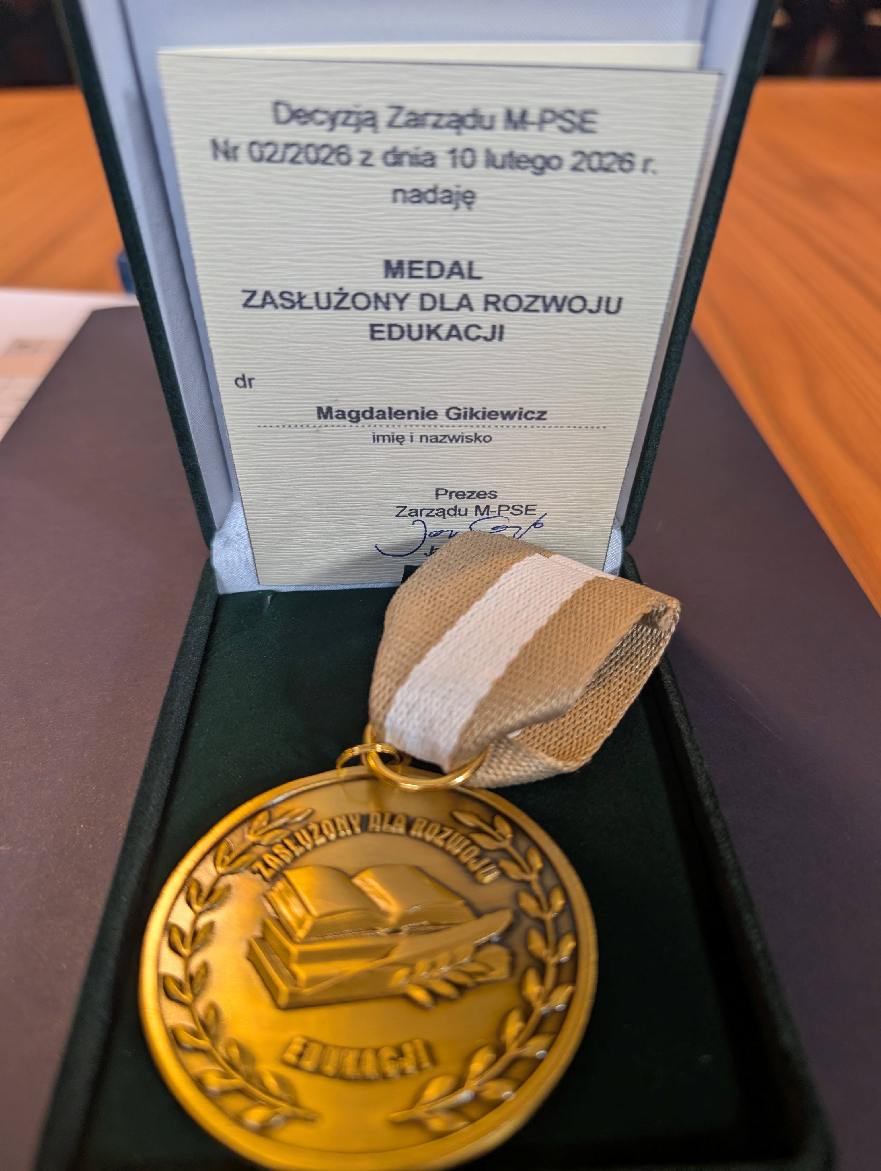 Podczas konferencji dr inż. Magdalena Gikiewicz została uhonorowana prestiżowym wyróżnieniem – medalem „Zasłużony dla rozwoju edukacji”, przyznanym Uchwałą Warmińsko-Podlaskiego Stowarzyszenia Edukatorów. Odznaczenie to stanowi wyraz uznania dla działalności naukowej Pani doktor oraz eksperckiego wkładu w rozwój edukacji i bezpieczeństwa.