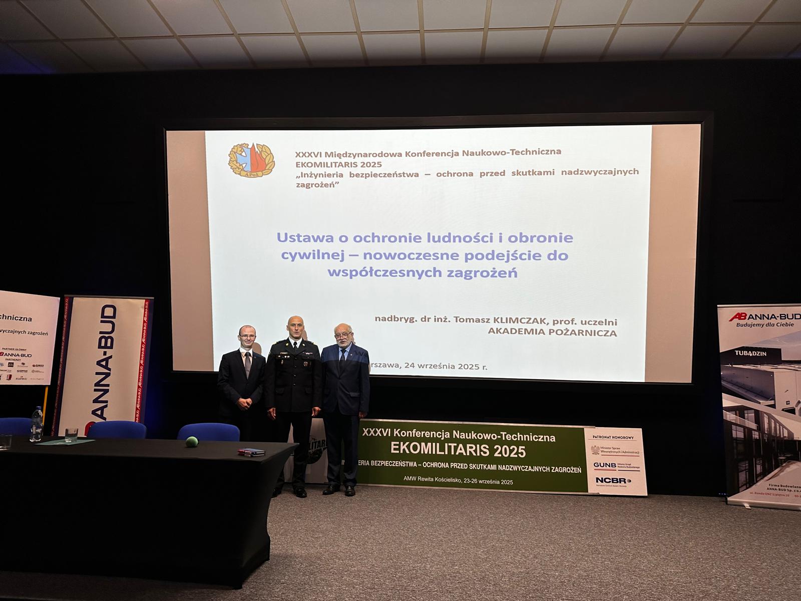 Rektor-Komendant Akademii Pożarniczej, nadbryg. dr inż. Tomasz Klimczak, prof. uczelni, 24 września 2025 r. uczestniczył w XXXVI Międzynarodowa Konferencja Naukowo-Techniczna EKOMILITARIS 2025 „Inżynieria bezpieczeństwa – ochrona przed skutkami nadzwyczajnych zagrożeń”.