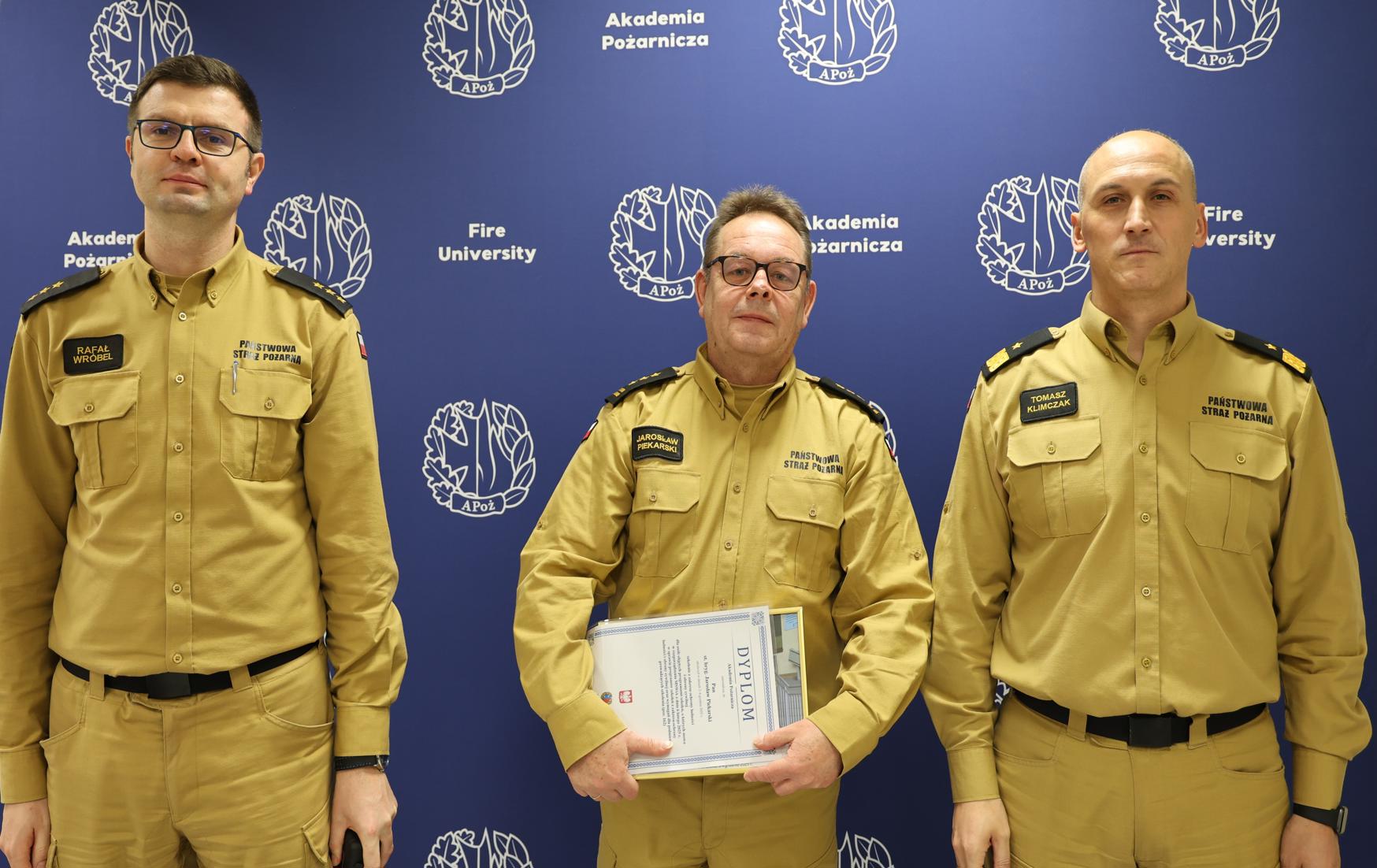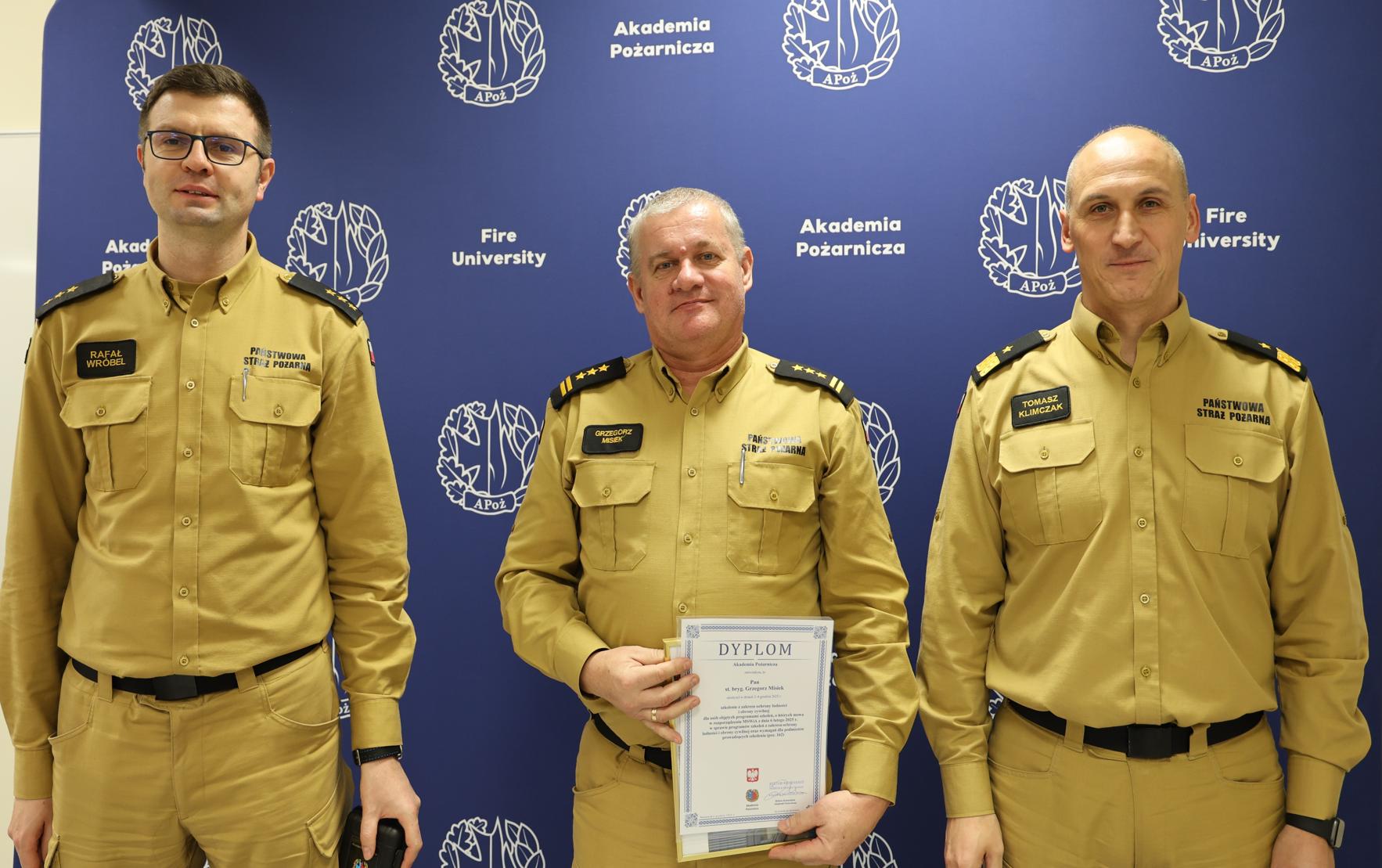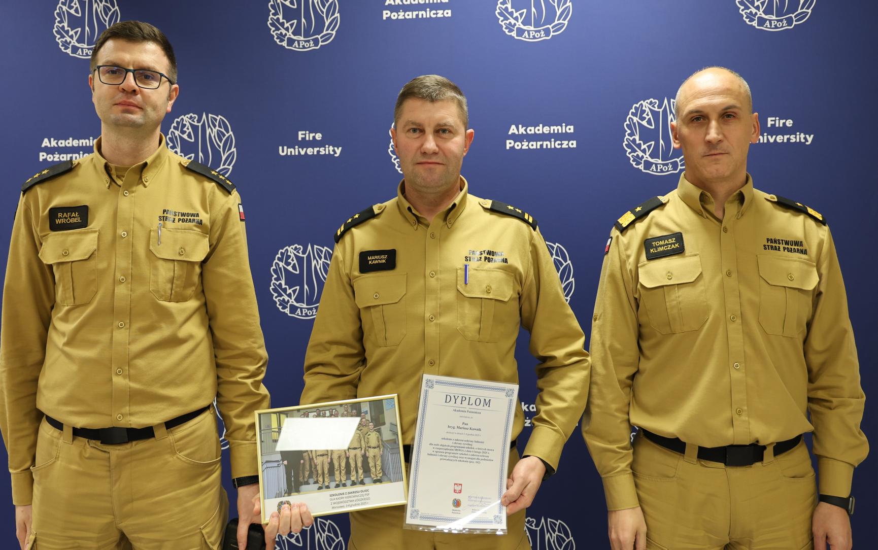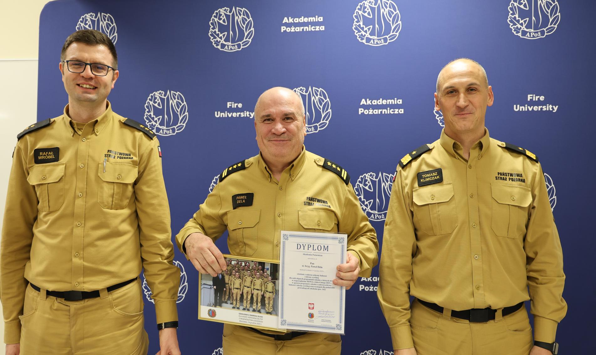 4 grudnia 2025 r. w Akademii Pożarniczej zakończono kolejną, ósmą edycję szkolenia z zakresu ochrony ludności i obrony cywilnej, skierowanego do kadry kierowniczej PSP na szczeblu powiatowym. W zajęciach uczestniczyło 21 komendantów powiatowych (miejskich) Państwowej Straży Pożarnej z województwa łódzkiego.