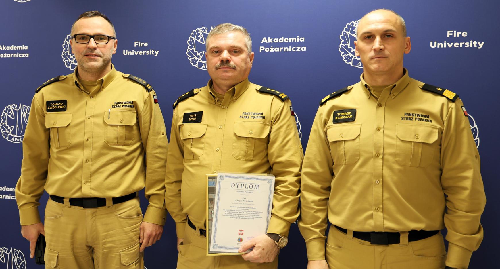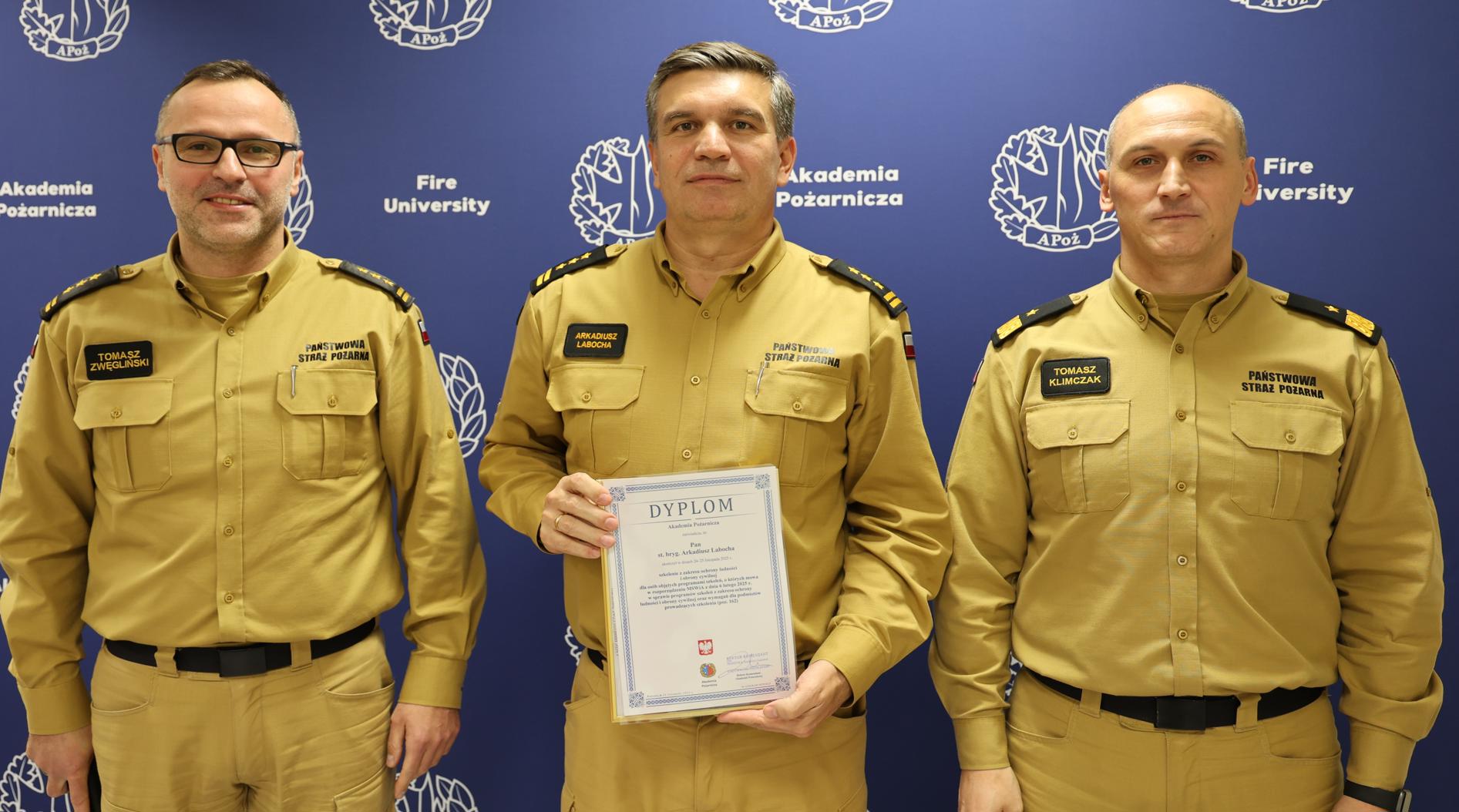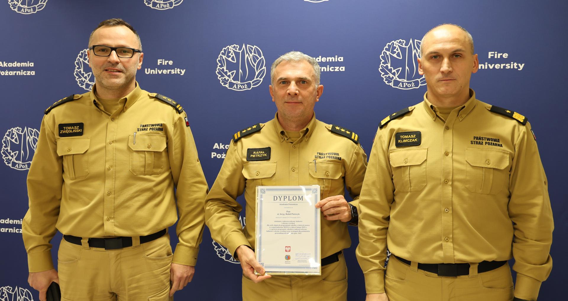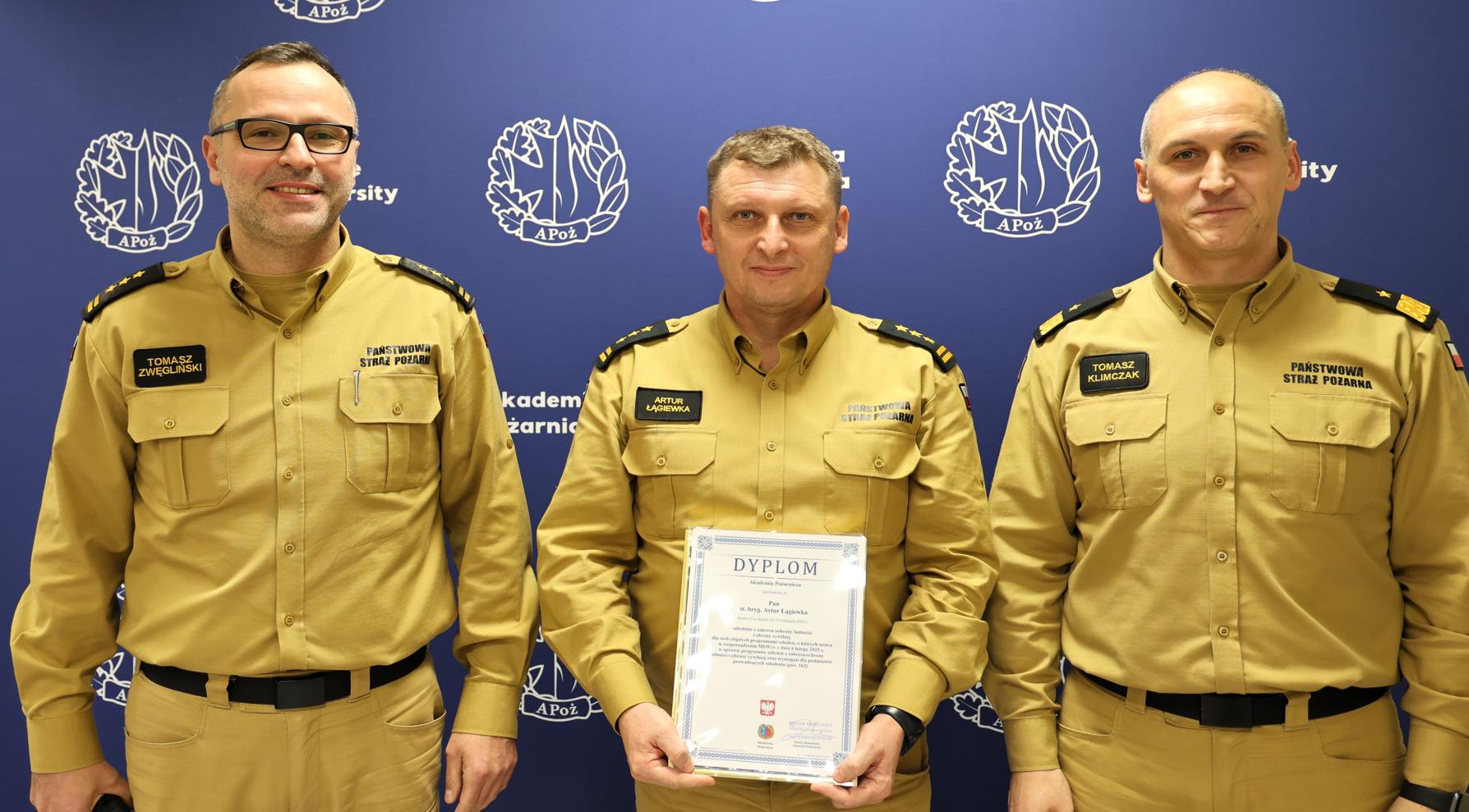 25 listopada 2025 r. w Akademii Pożarniczej zakończyła się szósta edycja szkolenia z zakresu ochrony ludności i obrony cywilnej, w którym uczestniczyło 28 komendantów oraz 2 zastępców komendantów powiatowych (miejskich) Państwowej Straży Pożarnej z województwa śląskiego.