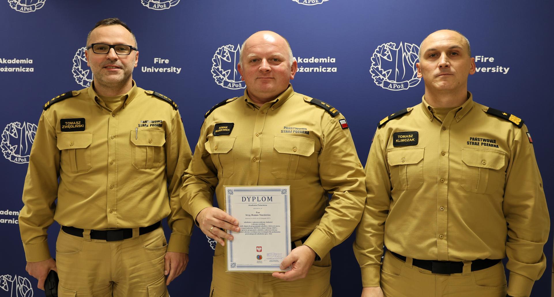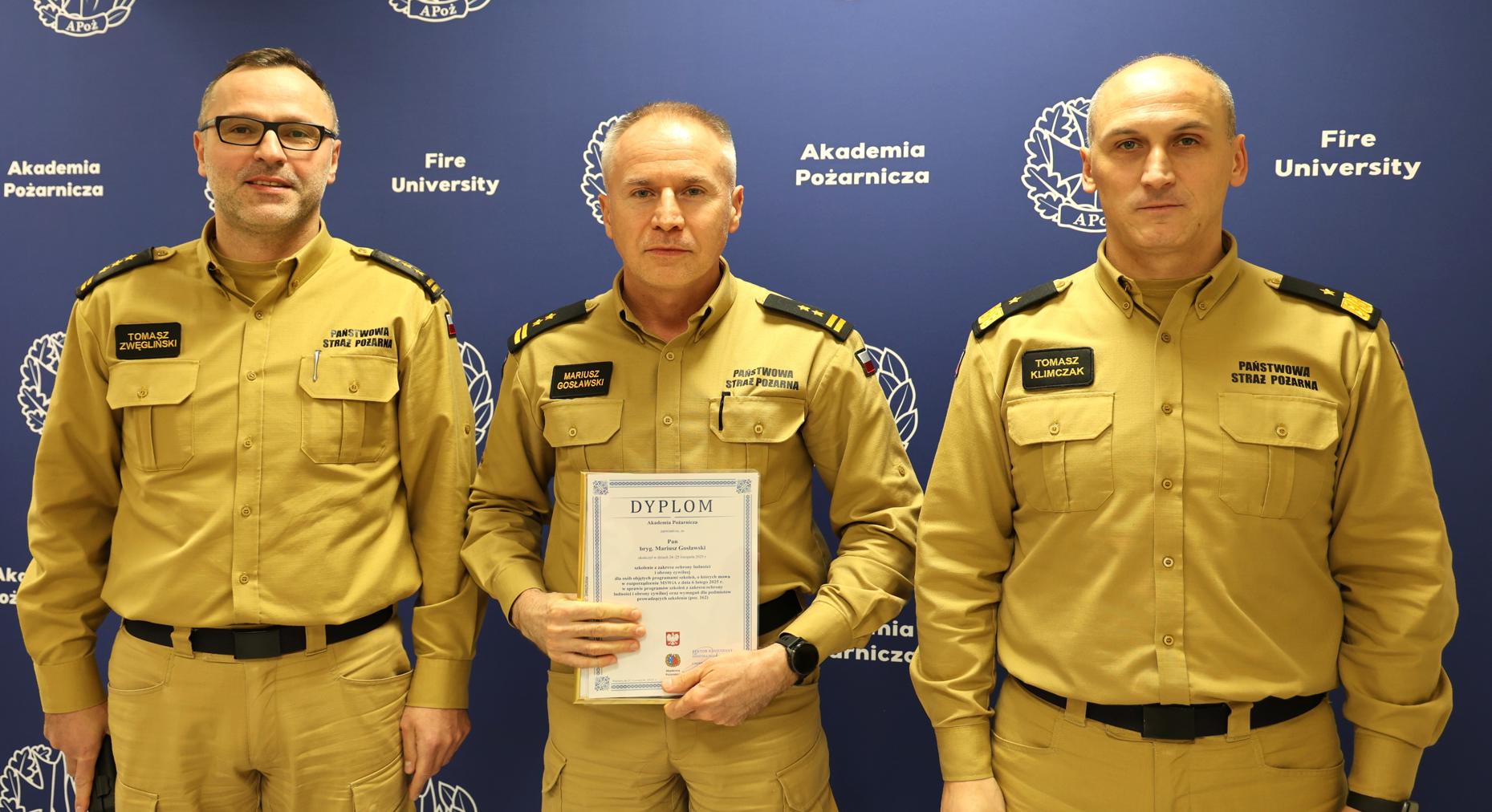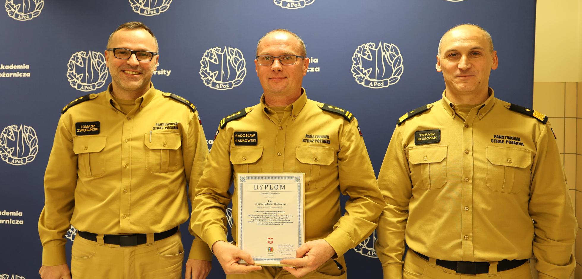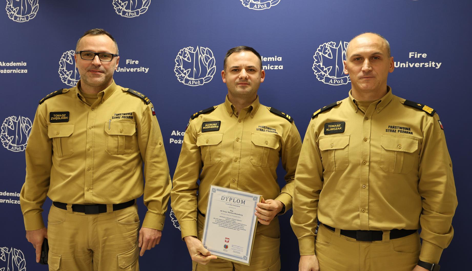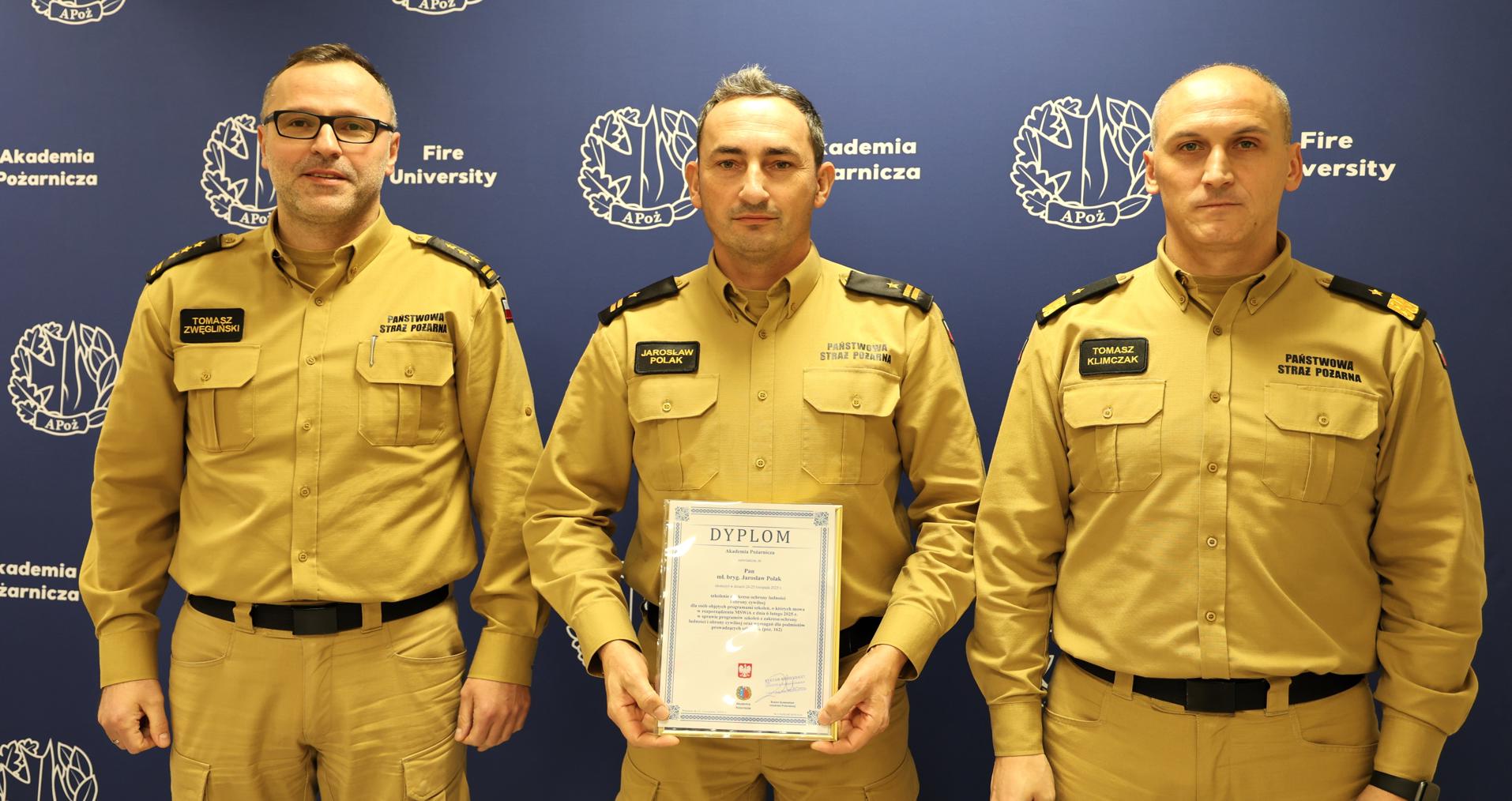 25 listopada 2025 r. w Akademii Pożarniczej zakończyła się szósta edycja szkolenia z zakresu ochrony ludności i obrony cywilnej, w którym uczestniczyło 28 komendantów oraz 2 zastępców komendantów powiatowych (miejskich) Państwowej Straży Pożarnej z województwa śląskiego.