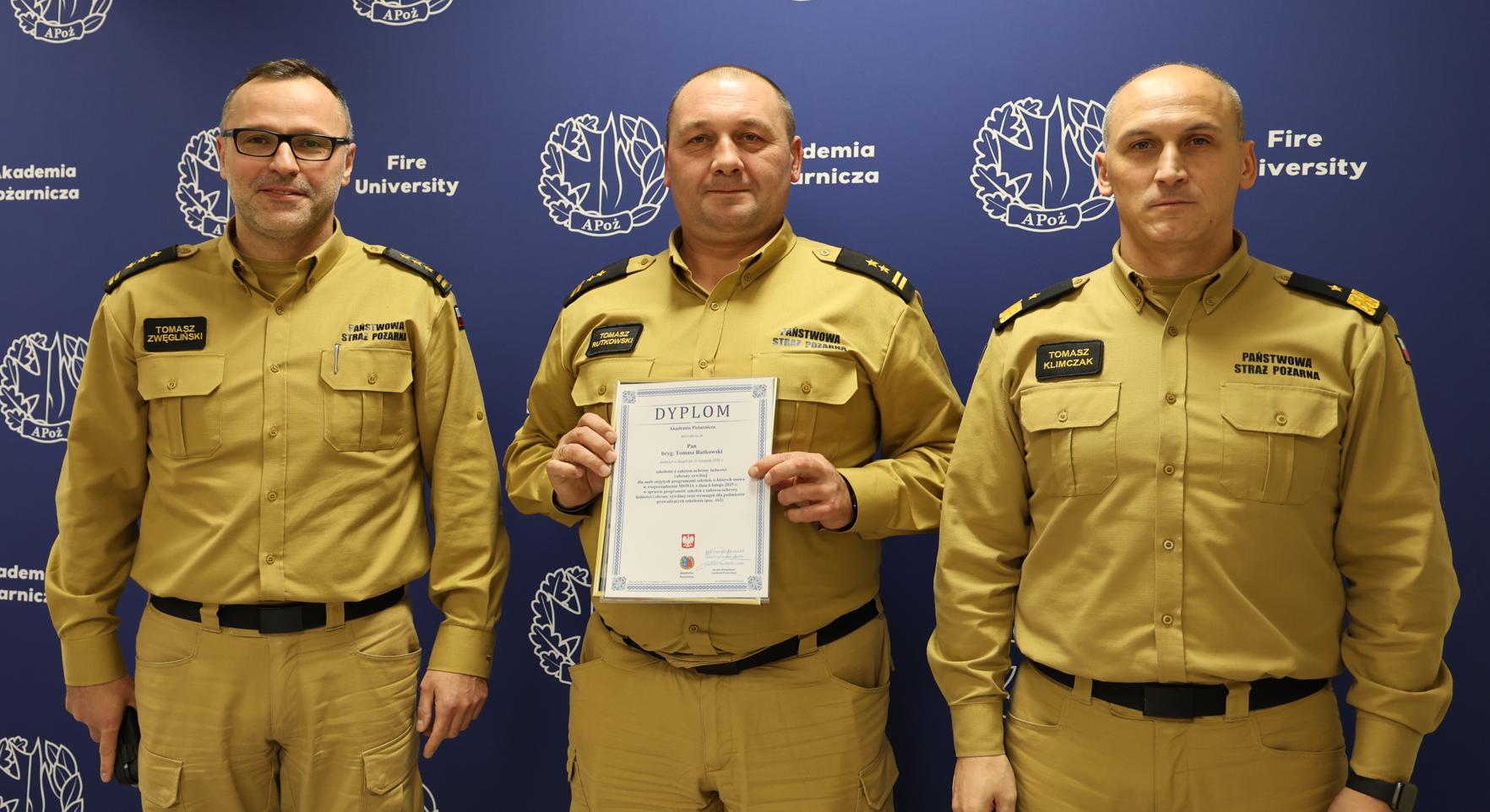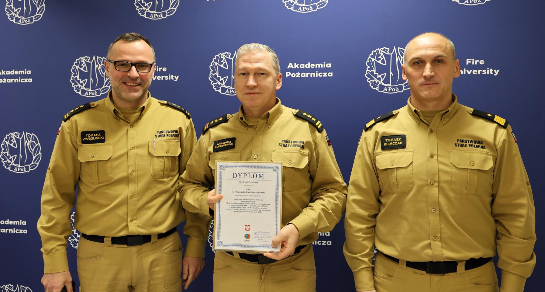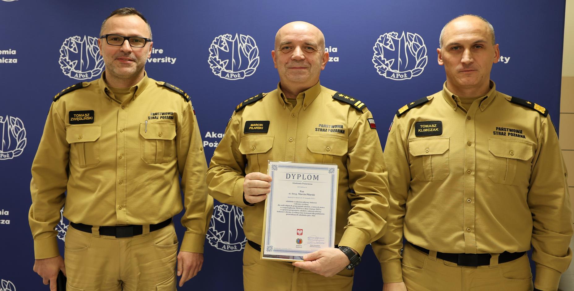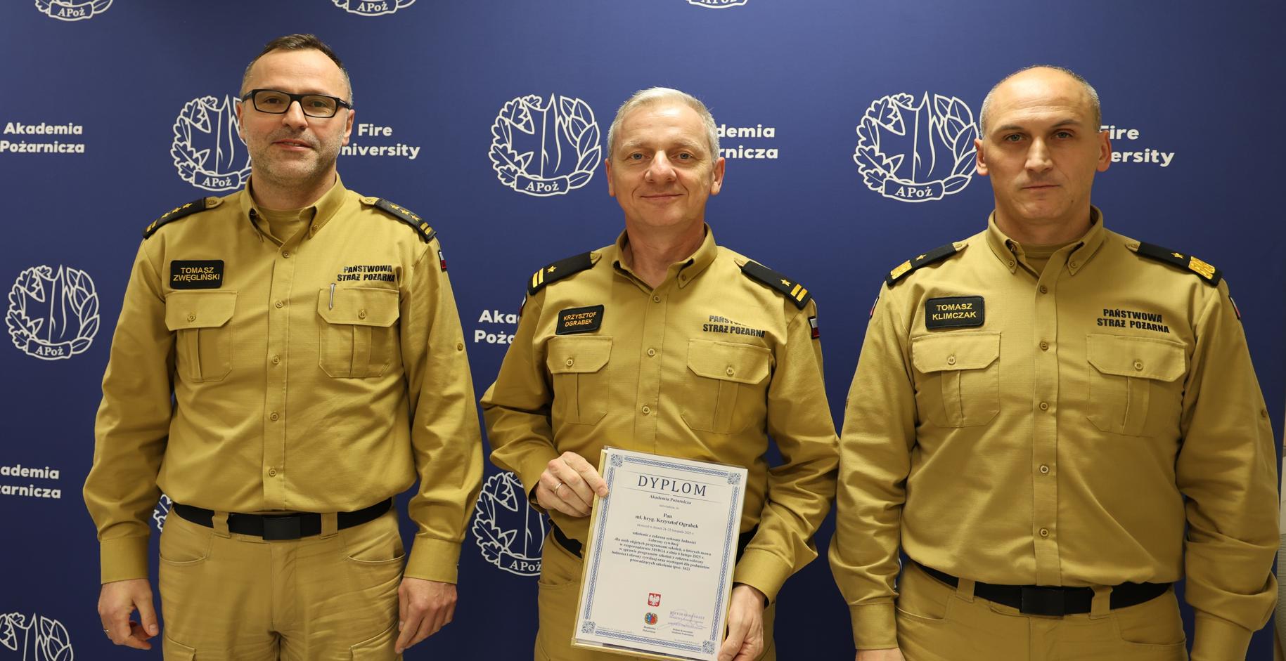 25 listopada 2025 r. w Akademii Pożarniczej zakończyła się szósta edycja szkolenia z zakresu ochrony ludności i obrony cywilnej, w którym uczestniczyło 28 komendantów oraz 2 zastępców komendantów powiatowych (miejskich) Państwowej Straży Pożarnej z województwa śląskiego.